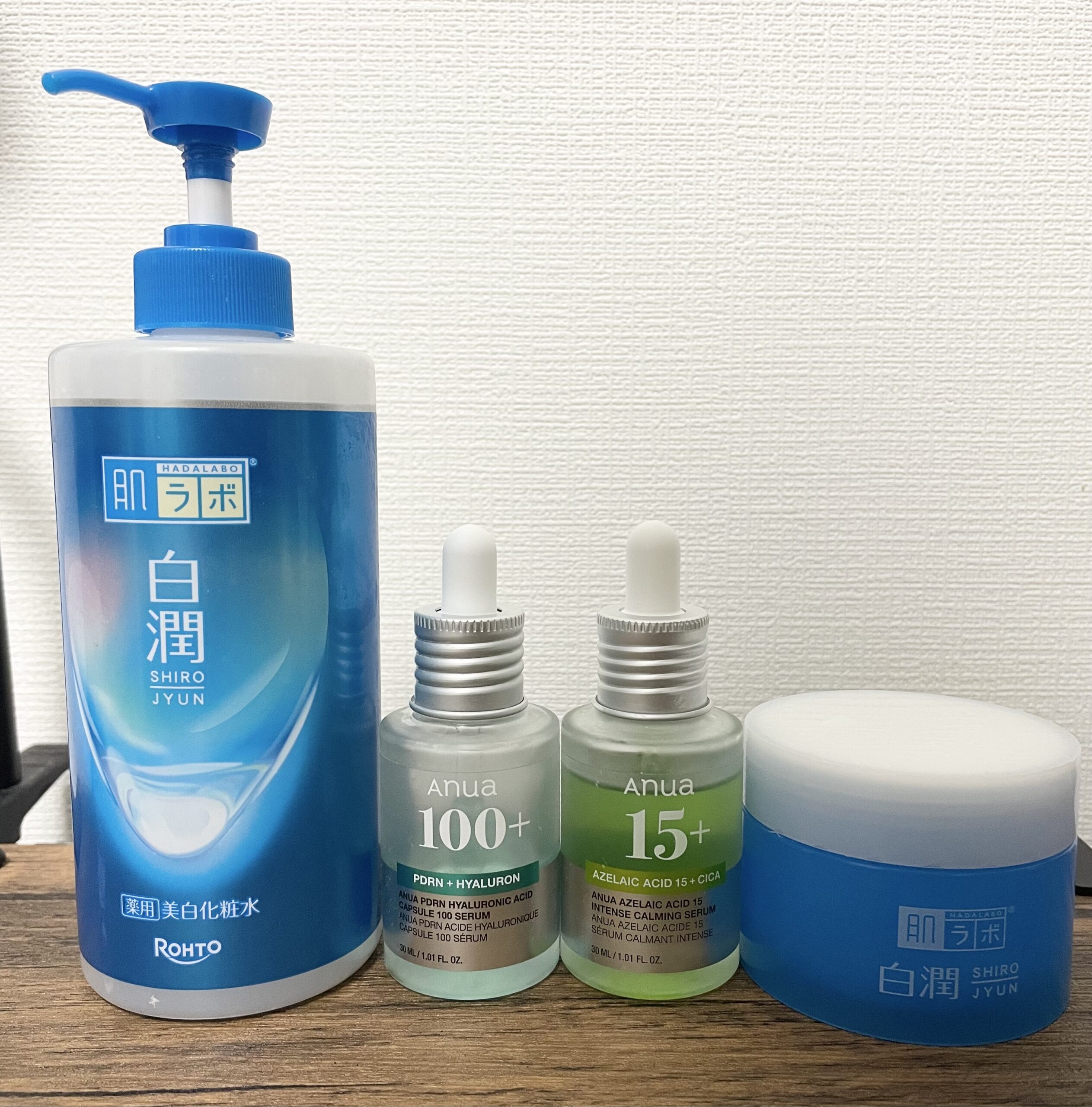 基本的に朝、夜使用している製品は同じですが、夜のみANUAのアゼライン酸15を使用しております。